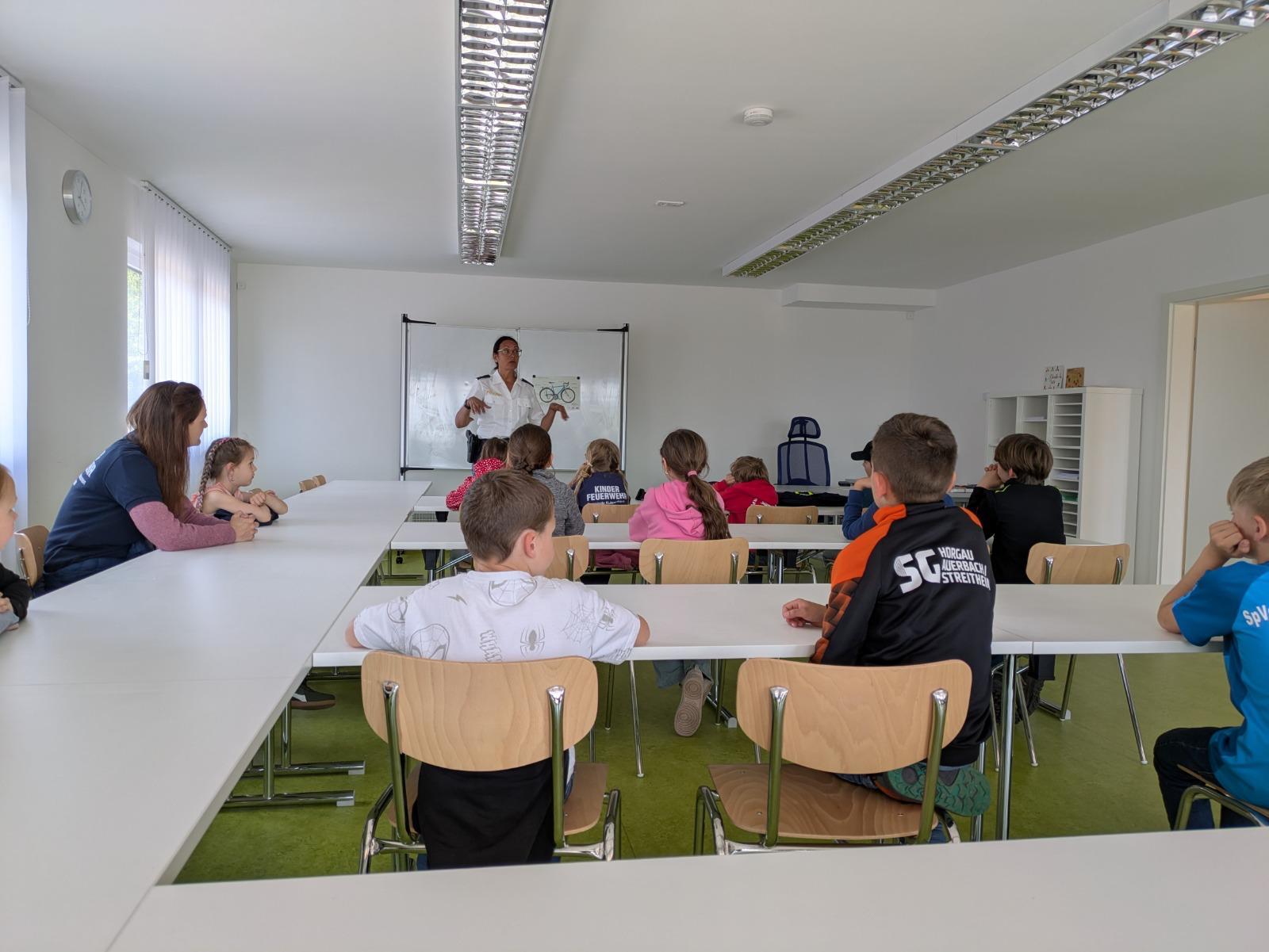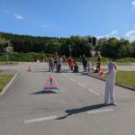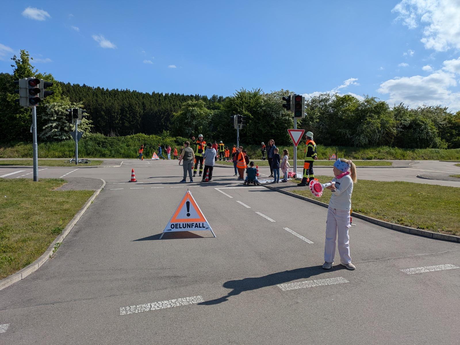 Treffpunkt war der Verkehrsübungsplatz Kutzenhausen. Anwesend waren 2 Polizistinnen aus Zusmarshausen, Mitglieder der Freiwilligen Feuerwehr Maingründel, sowie das Betreuerteam der Kinderfeuerwehr Kutzenhausen und der Kommandant der Freiwilligen Feuerwehr Kutzenhausen.